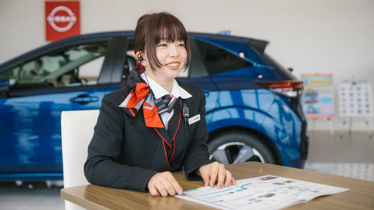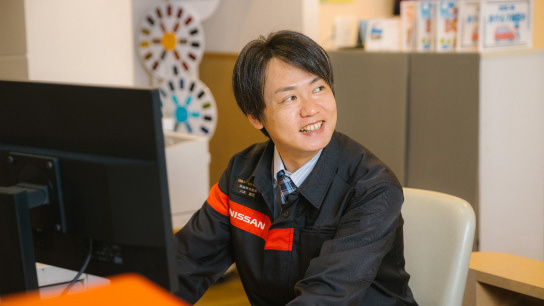 主に、アフターサービス(点検・整備・修理・部用品の取り付けなど)の受付・精算などの業務を行います。いつも店頭にいる【お店の顔】です。お客さま・営業・サービス・関係業者など様々な人たちの調整役でもあります。