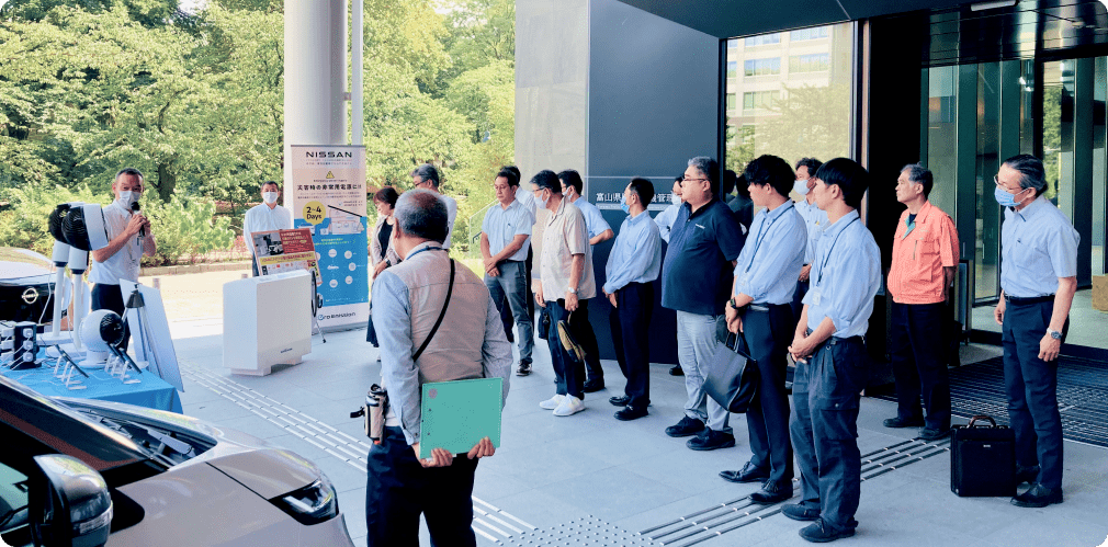 地域の防災訓練にも積極的に参加しています。EVは「日常生活に欠かせないモビリティ」であると同時に有事の際には頼れる「大容量の蓄電池」でもあります。
