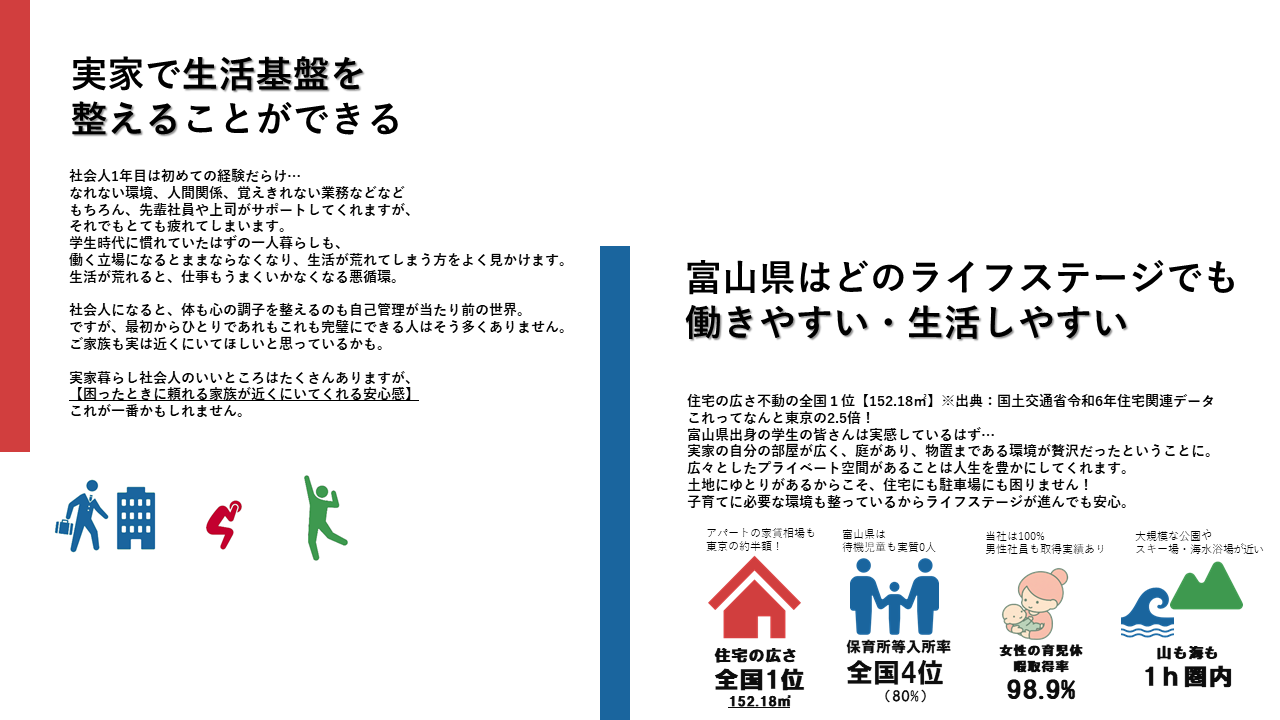 詳細:富山県庁HP内該当ページ まずはオープンカンパニーに参加してみましょう! オンライン開催でちょっと話をきいてみる【こちらをクリック】 現地開催の説明会で社風や環境も確認する【こちらをクリック】 NEXTCONTENTS JOB 仕事について ENTRY 中途採用 新卒採用