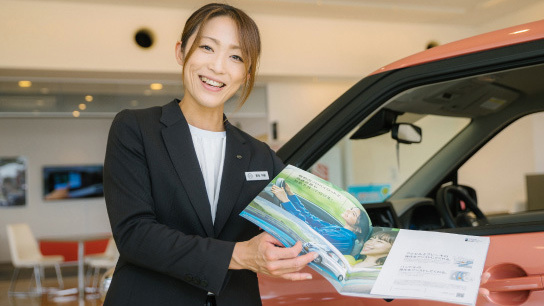お客さまのニーズを引き出し、ピッタリな購入プランを提案する仕事です。ご成約・納車後はあらゆる担当者として、アフターサービスなどフォローをし続ける【クルマの総合窓口】です。お客さまと最も密に信頼関係を築くことが大切な仕事です。