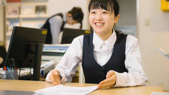主に、アフターサービス(点検・整備・修理・部用品の取り付けなど)の受付・精算などの業務を行います。いつも店頭にいる【お店の顔】です。お客さま・営業・サービス・関係業者など様々な人たちの調整役でもあります。