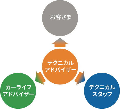 お客さまへ実施した作業内容をご説明します。多くの場合、作業を担当したテクニカルスタッフが直接、整備結果説明を実施しますが、状況によってテクニカルアドバイザーも実施することがあります。